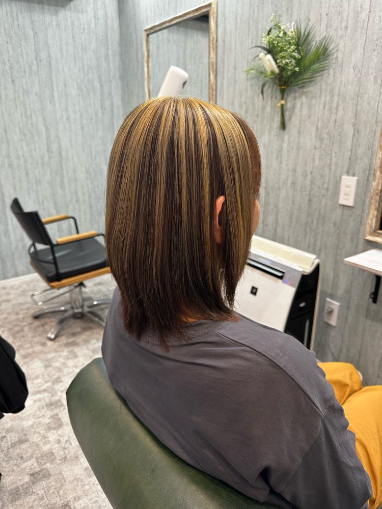こちらのお客様はハイライト(部分的)ではなく、全体ブリーチに移行。