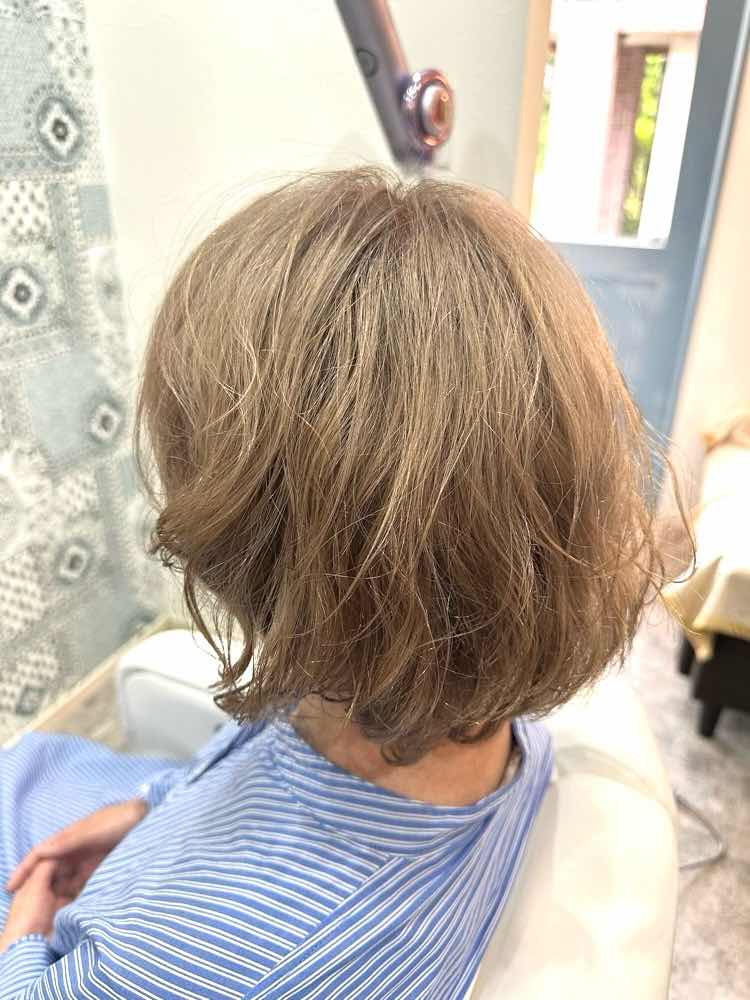 とは言えやはり白髪は「天然のハイブリーチ毛』であり、それらがぴったり噛み合ったときの美しさは、知らない人に急に褒められたりする仕上がりになります。